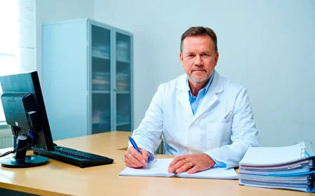 Врач и пациент беседуют за столом